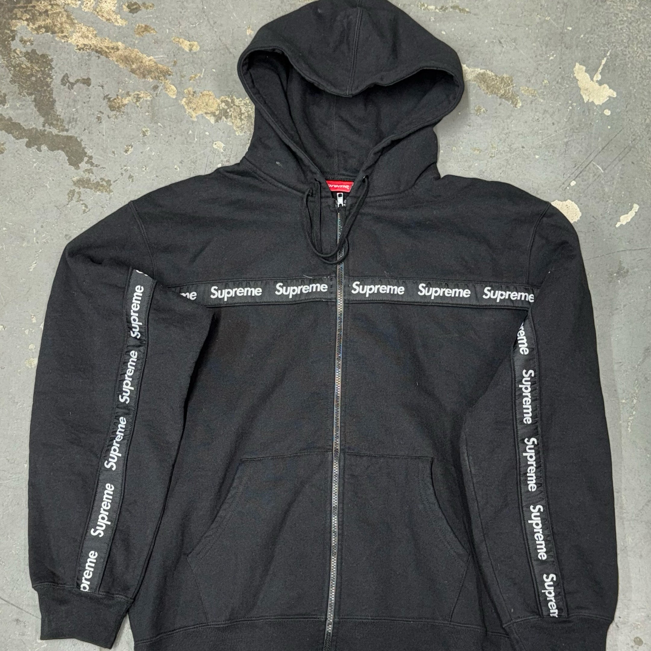 Supreme Text Stripe Zip Up Hooded Sweatshirt – XL