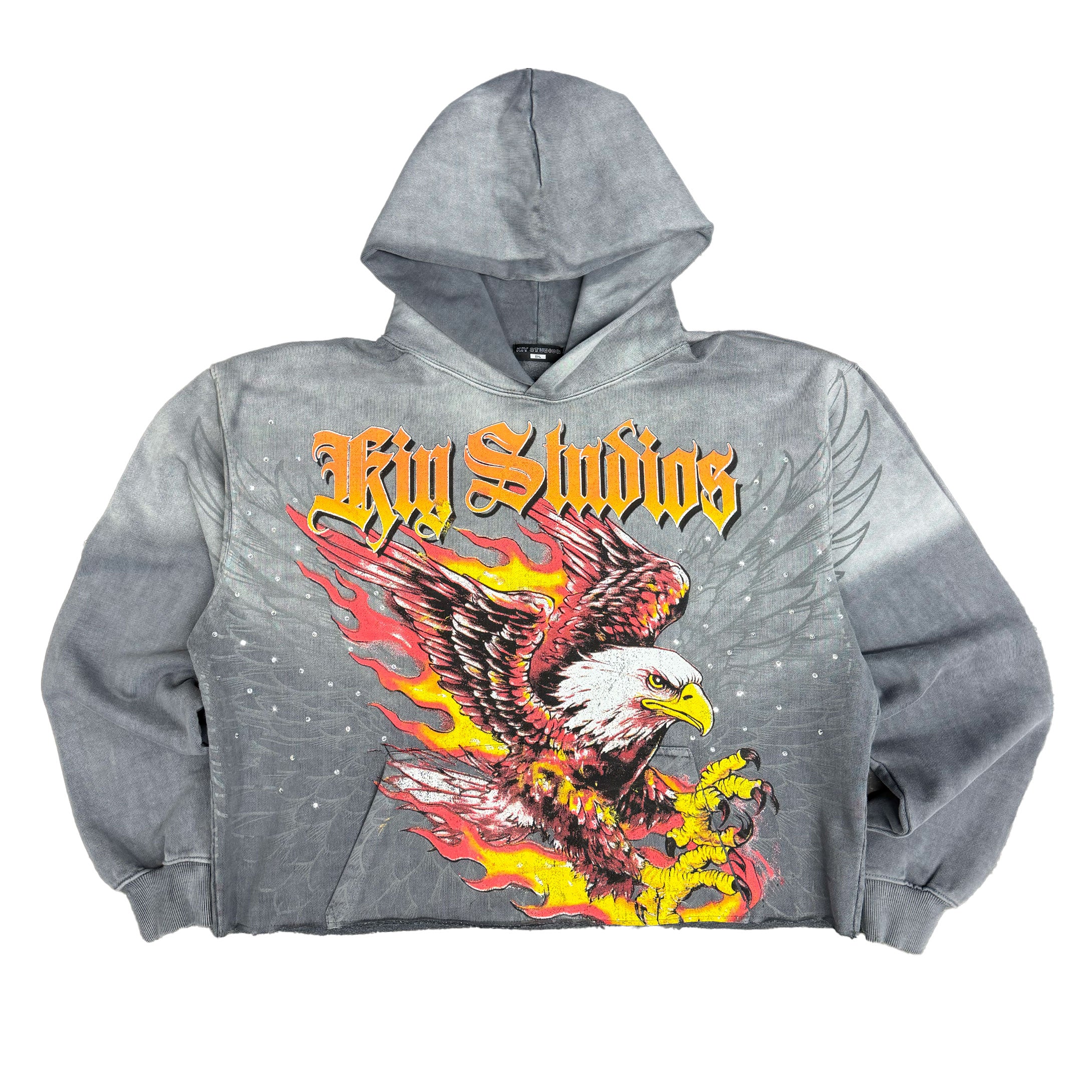 Kiy Studios "MOTOR CO INFERNO" Sun Faded Grey Cropped Hoodie